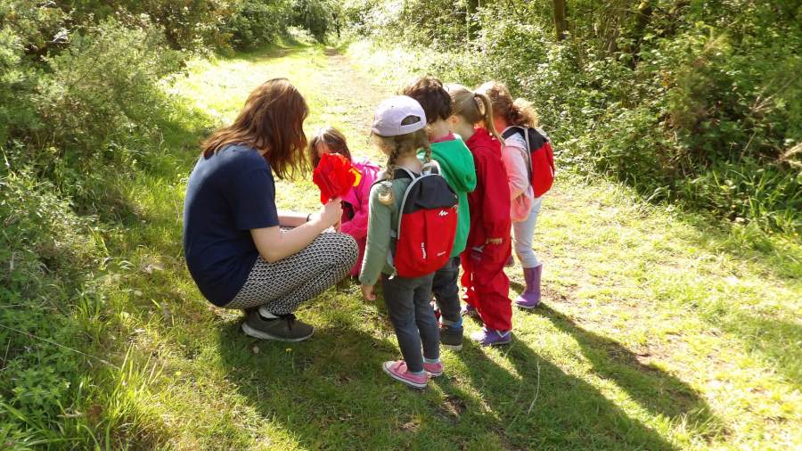 To give the children a sense of independence at Forest School the children now carry their own special ‘Forest School’ backpacks, which contain food for the pigs, matching cards, a magnifying glass and a bug collecting container. They can then enjoy bug investigation before releasing them back into the forest.