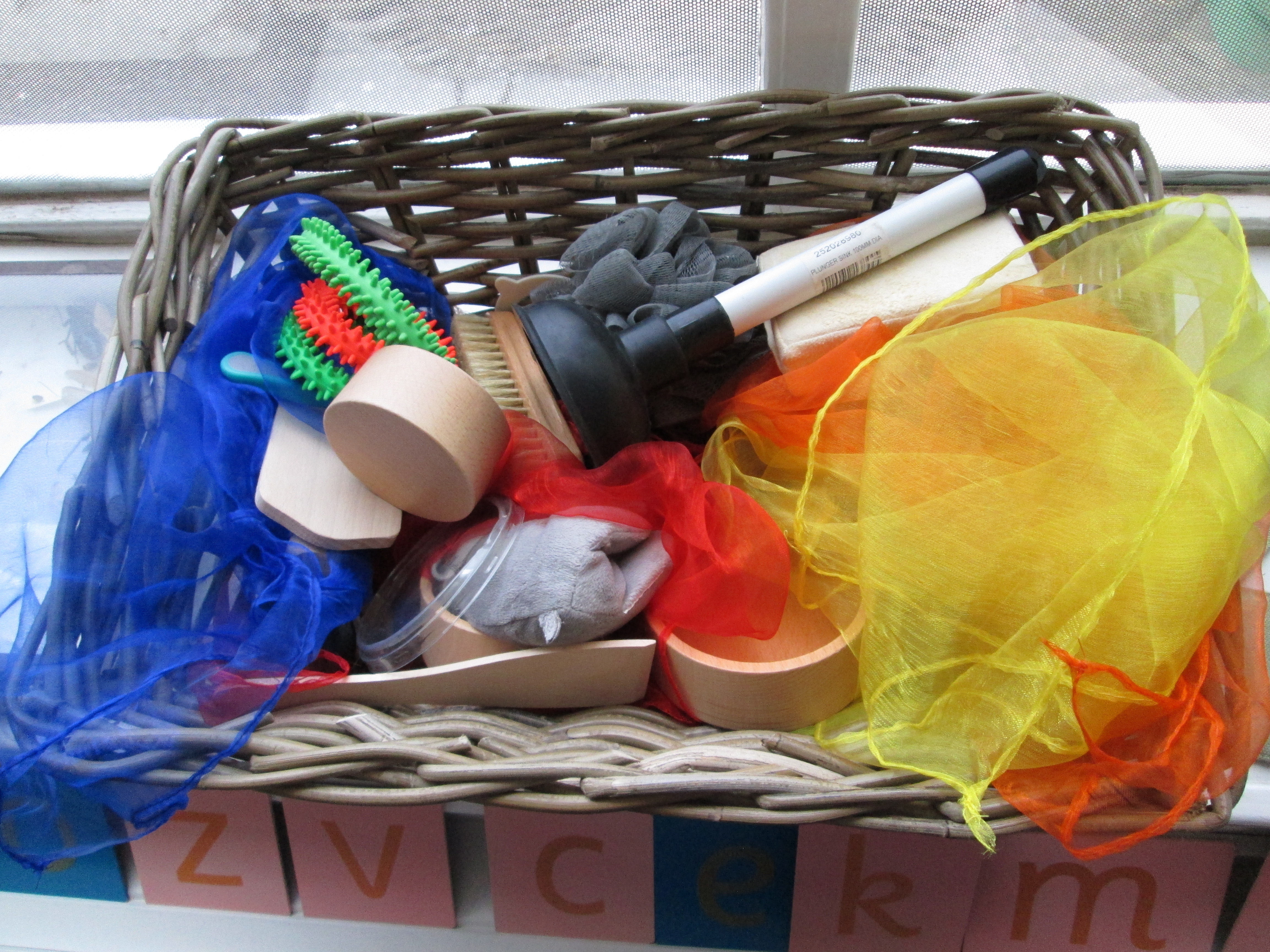 In another area of the Sensorial room we have a set of smelling bottles which help educate children with their olfactory sense. They have been grinding coffee, which is creating a wonderful aroma, but also peppercorns, which has a completely different smell which the children are able to identify. For further exploration we have introduced some mystery bags to also educate them about the sense of touch.