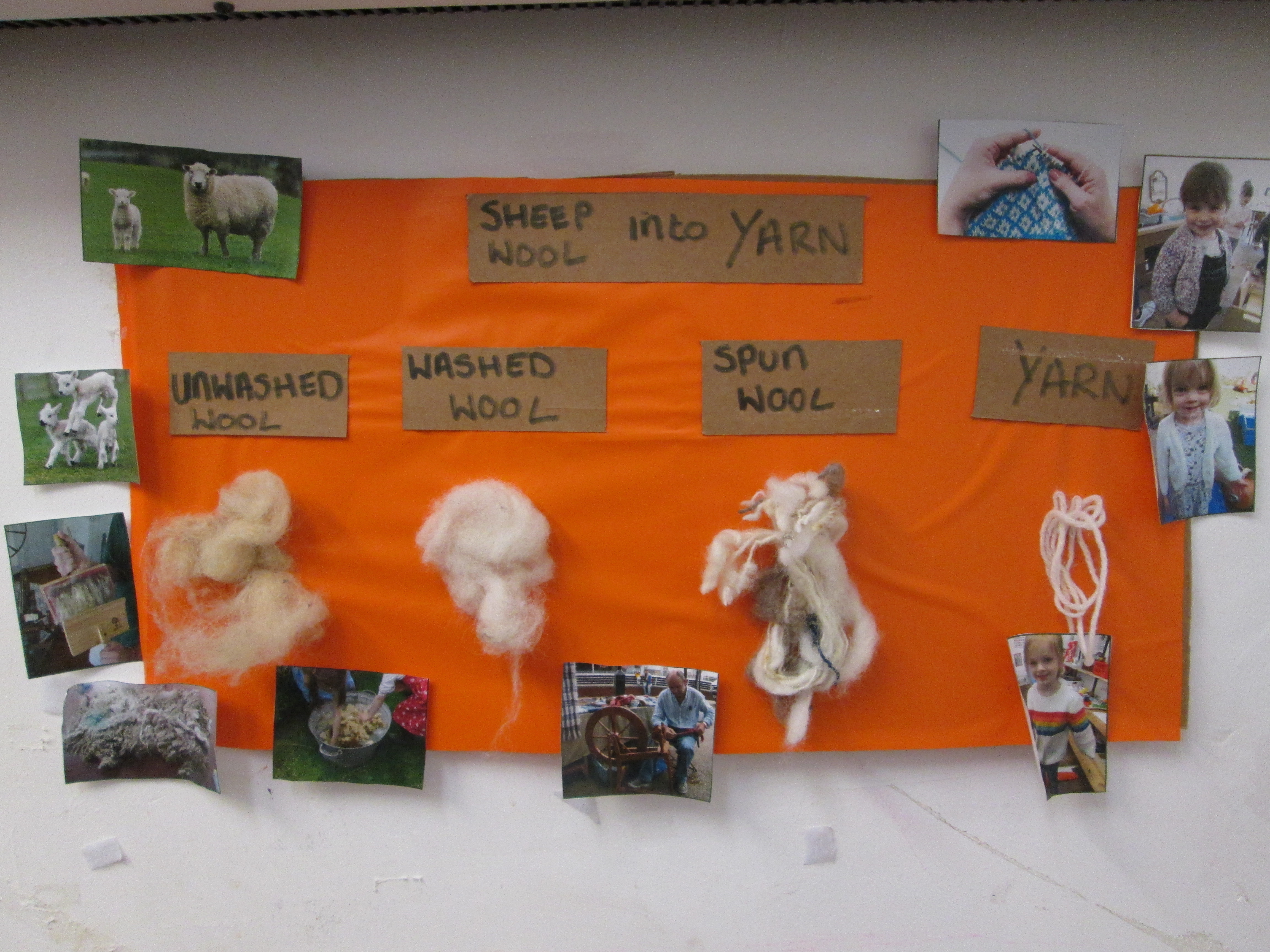 The children enjoyed looking at the different stages of sheep into yarn and how they are able to wear jumpers knitted from spun yarn.