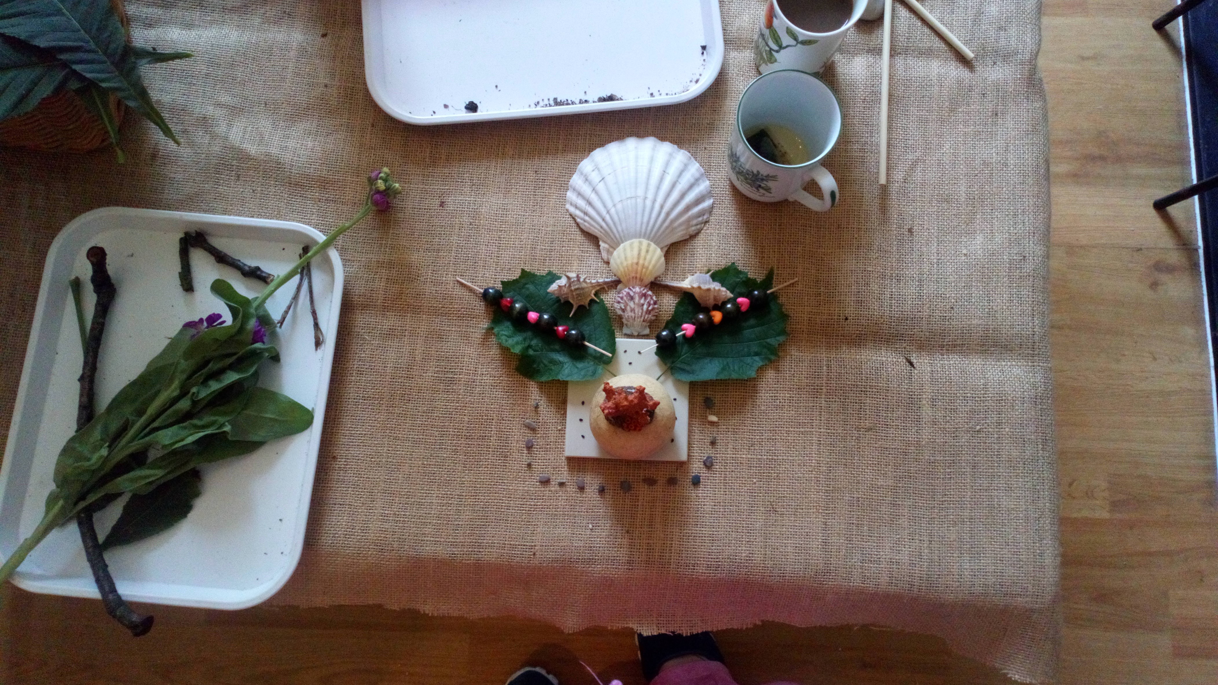 We also looked at loose parts play which offers an opportunity for the child’s expression and the bigger and more varied the collection is, the more inspiring it can be. Many of the parts can be collected from the outdoors, with flowers, leaves, petals, stones, bark etc similar to what we do at Forest School where we collect things from the forest floor.