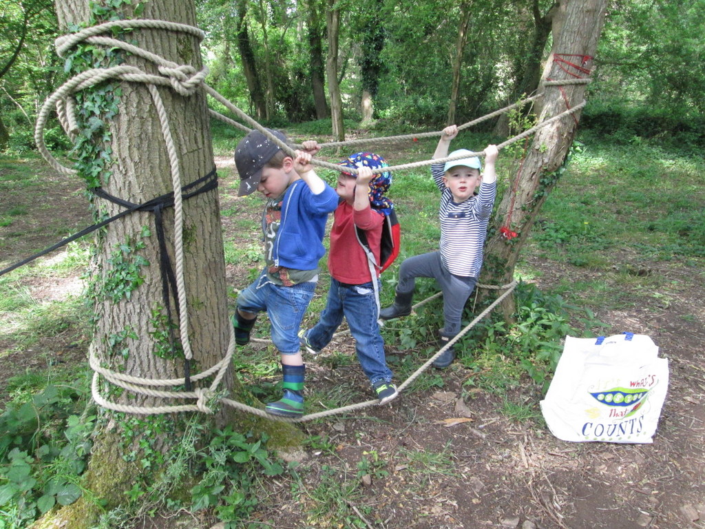 We have also greatly enjoyed using ropes strung between trees to practice balancing, walking and also learning to climb up the tree trunk.