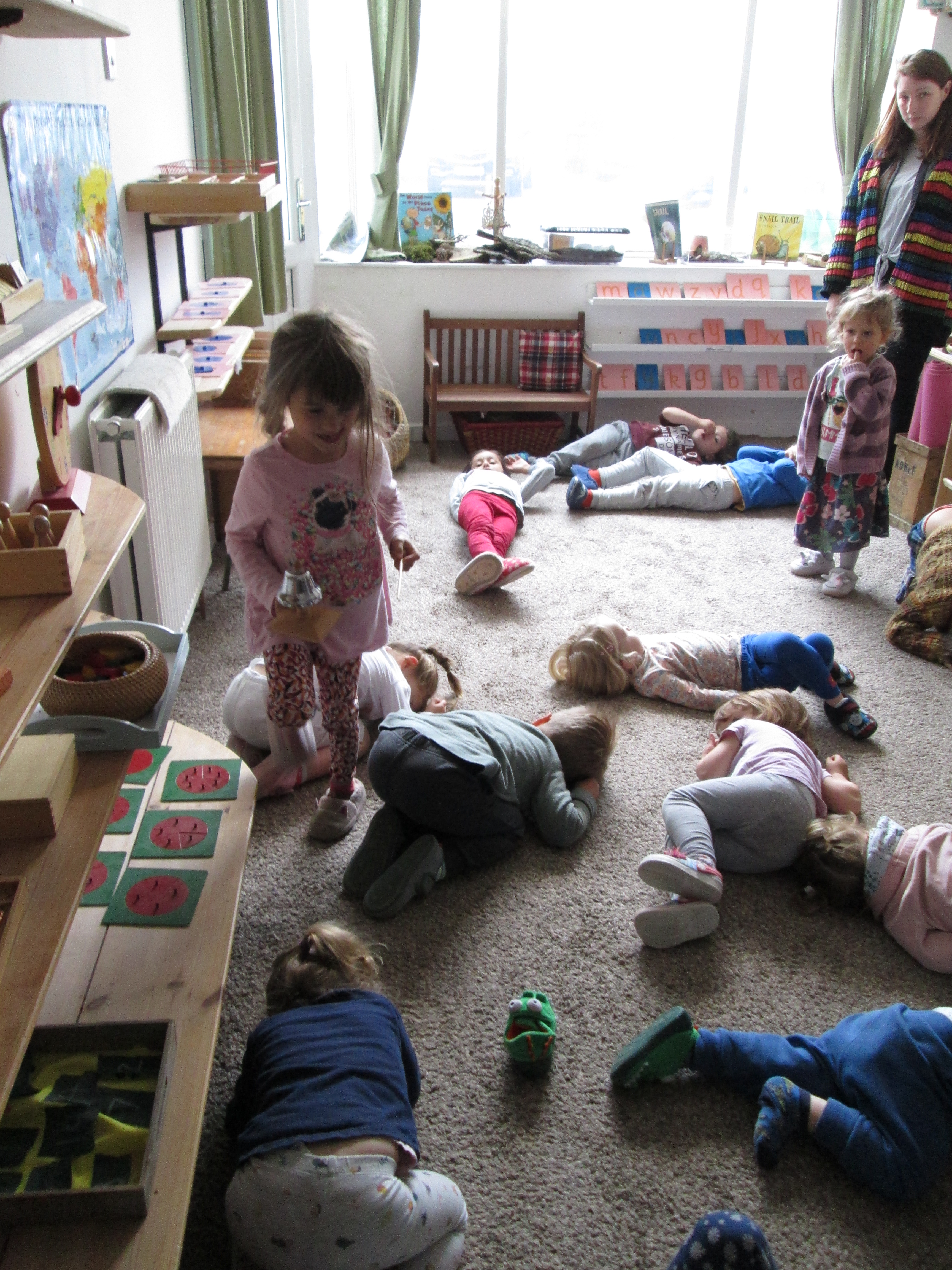 In our group times in the Sensorial room we have been continuing with our mindfulness sessions which the children are enjoying. The children were encouraged to use visualisation following a story that they were told about cycling along the road using their legs and then freewheeling down the hills.