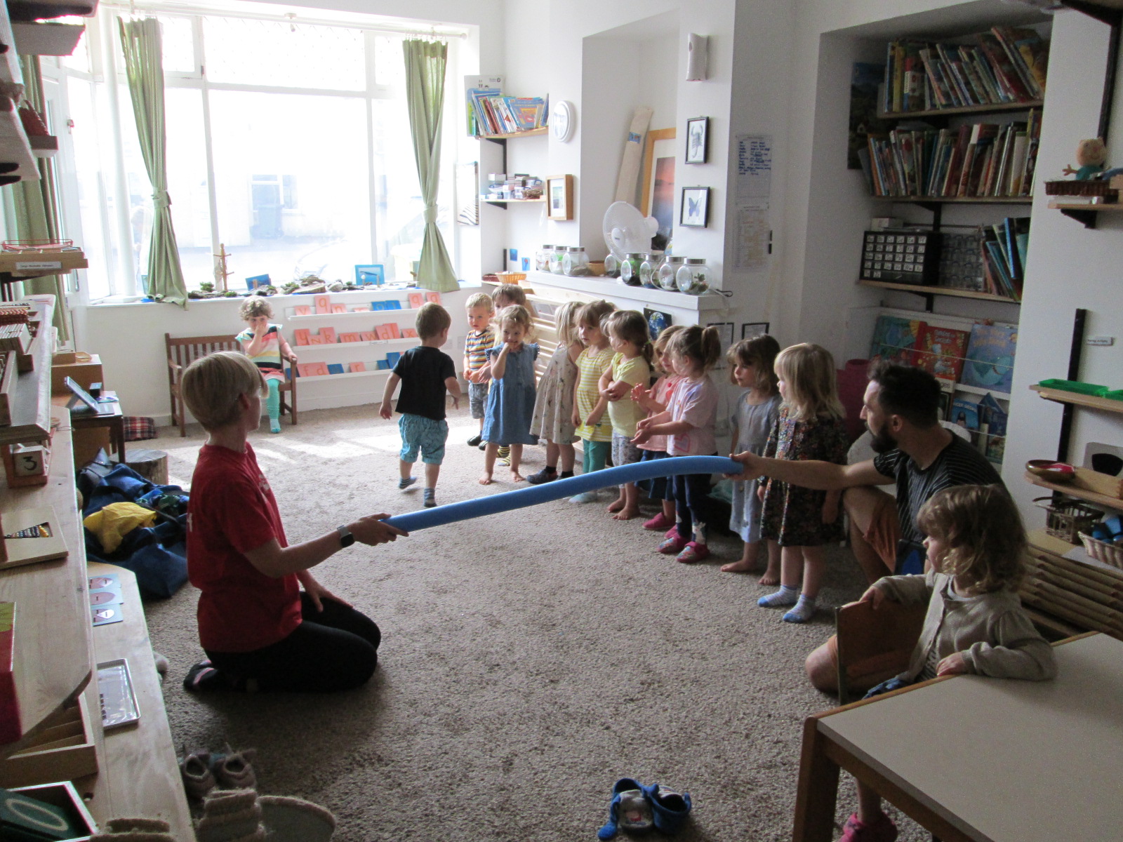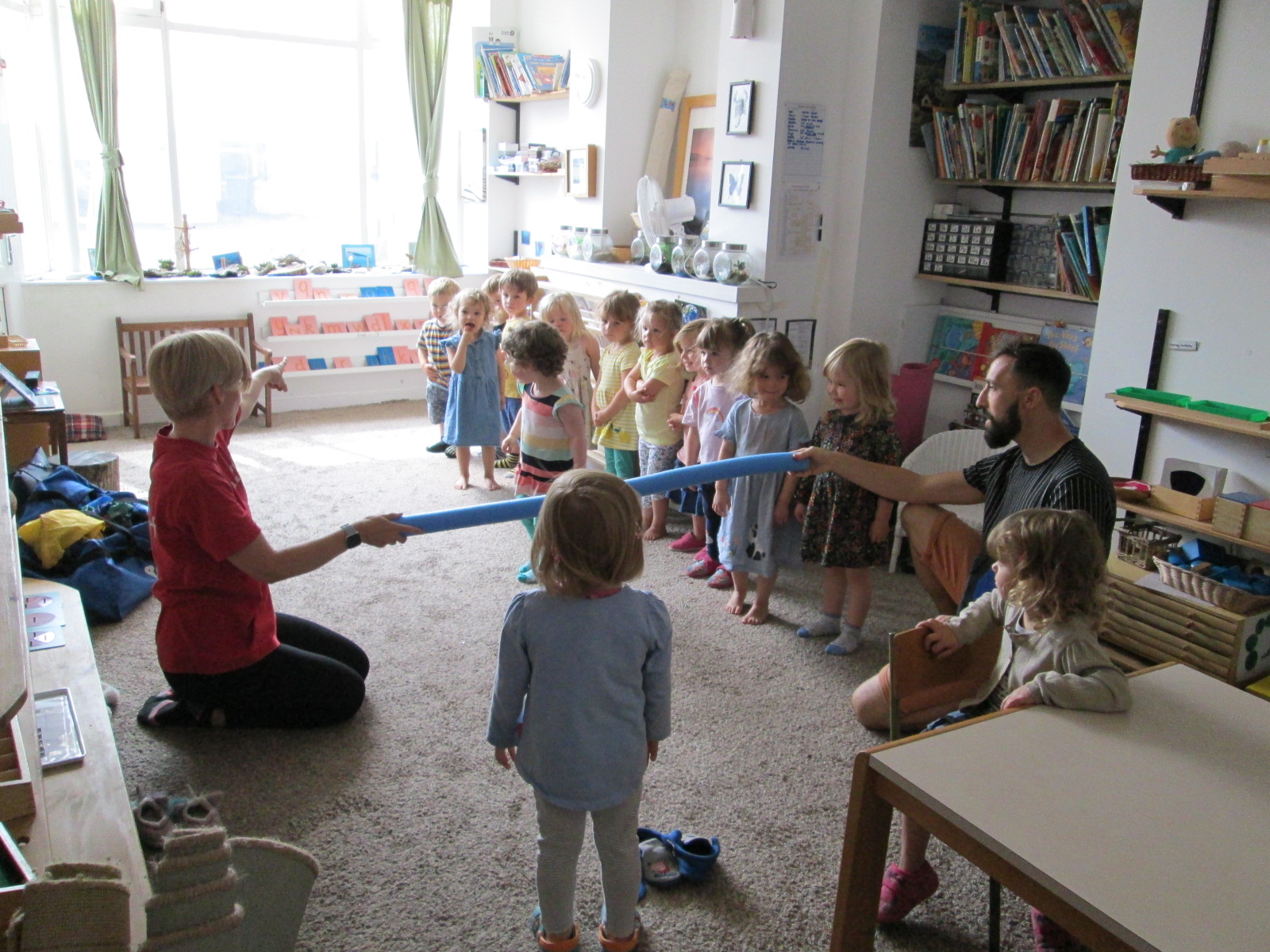 Our weekly Stretch and Grow session in the baby room with the older children.