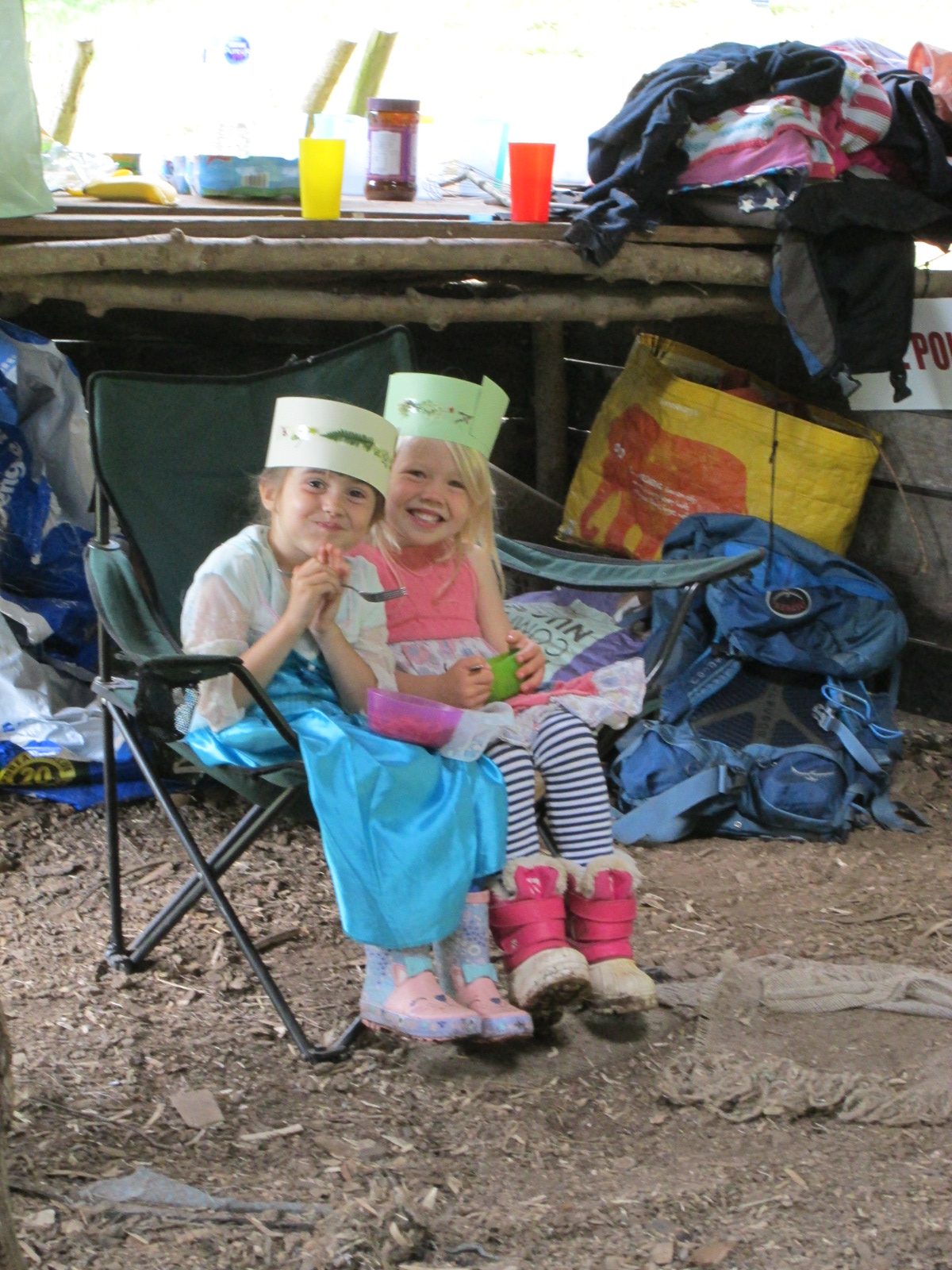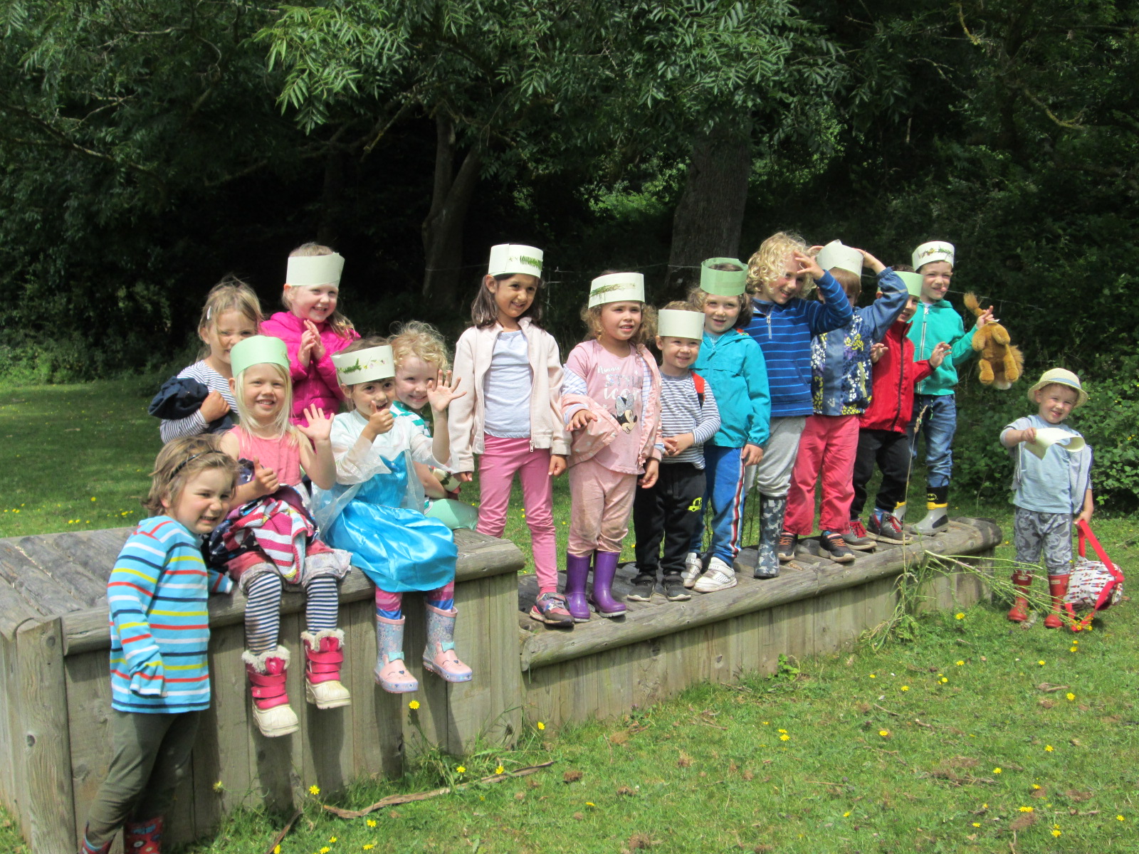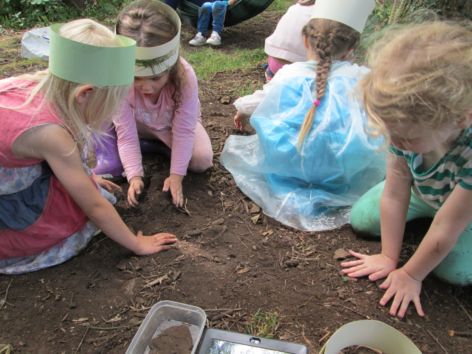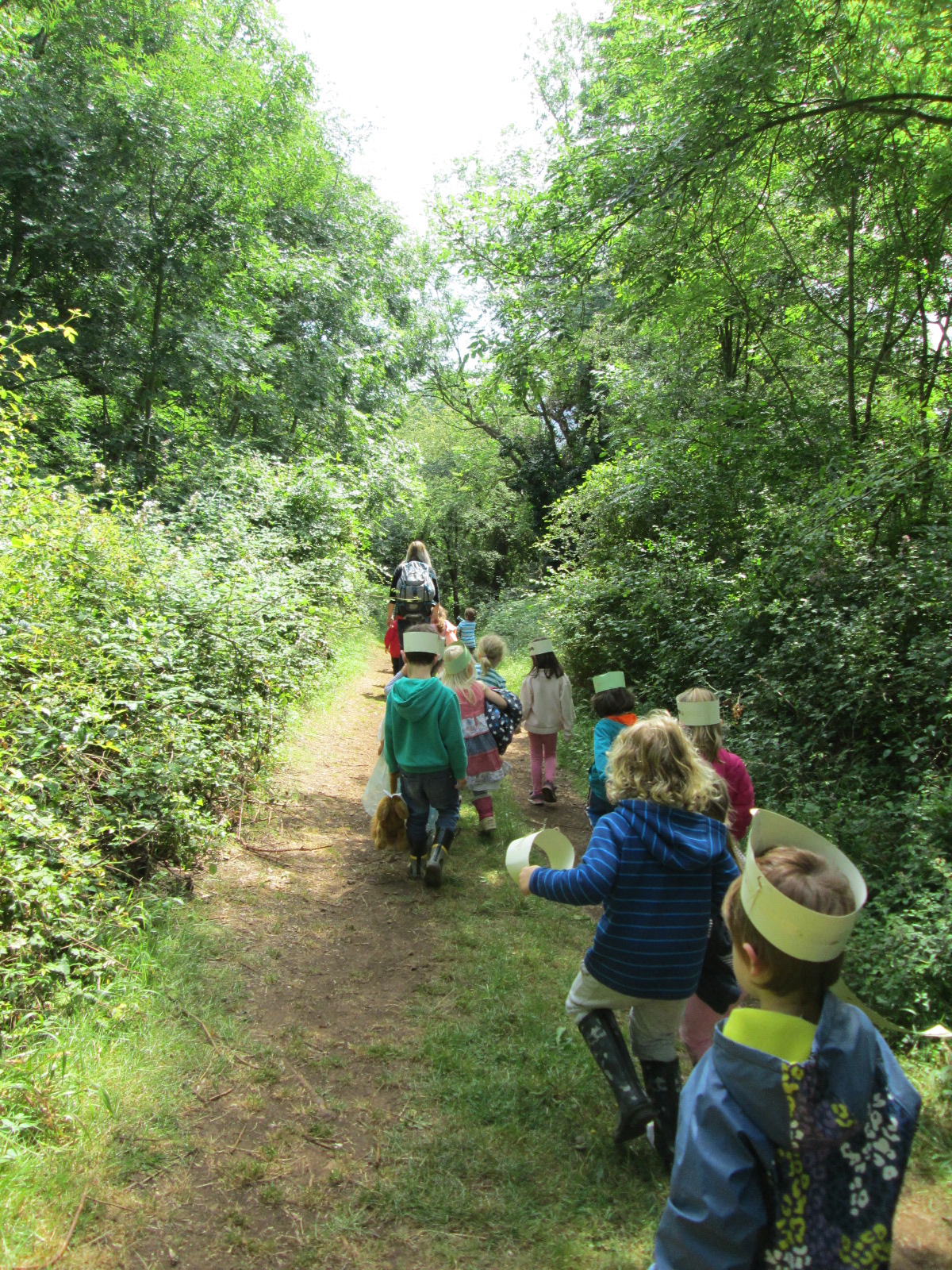 While lunch was cooking, we made paper crowns and decorated them with treasures from the forest i.e. leaves, flowers and other things that they found on the ground. We are always impressed at the creativity of the children in finding a great array of natural and colourful materials for this type of activity.
